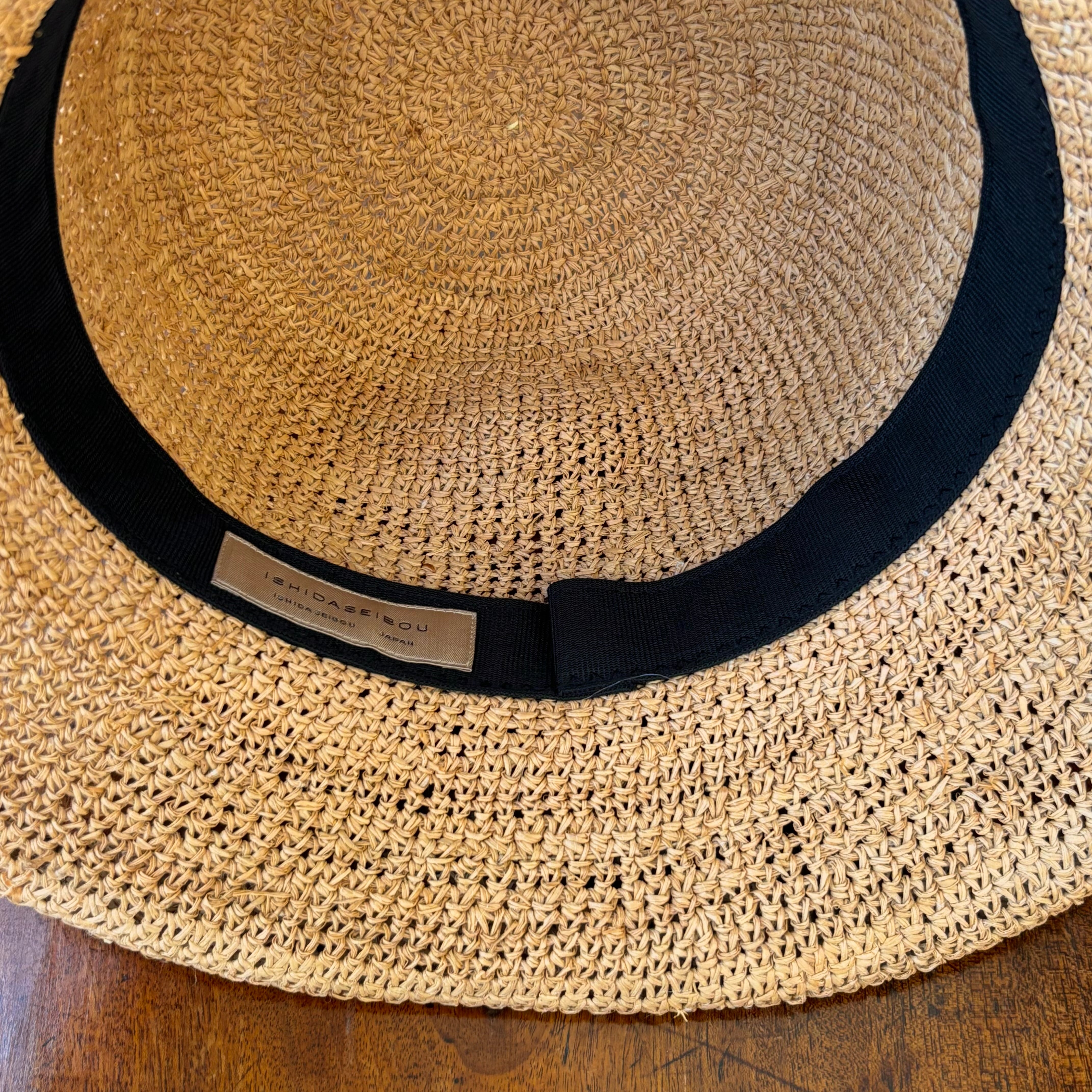 石田製帽 ラフィア糸入りかぎ編みソフトハットセーラー ベージュ