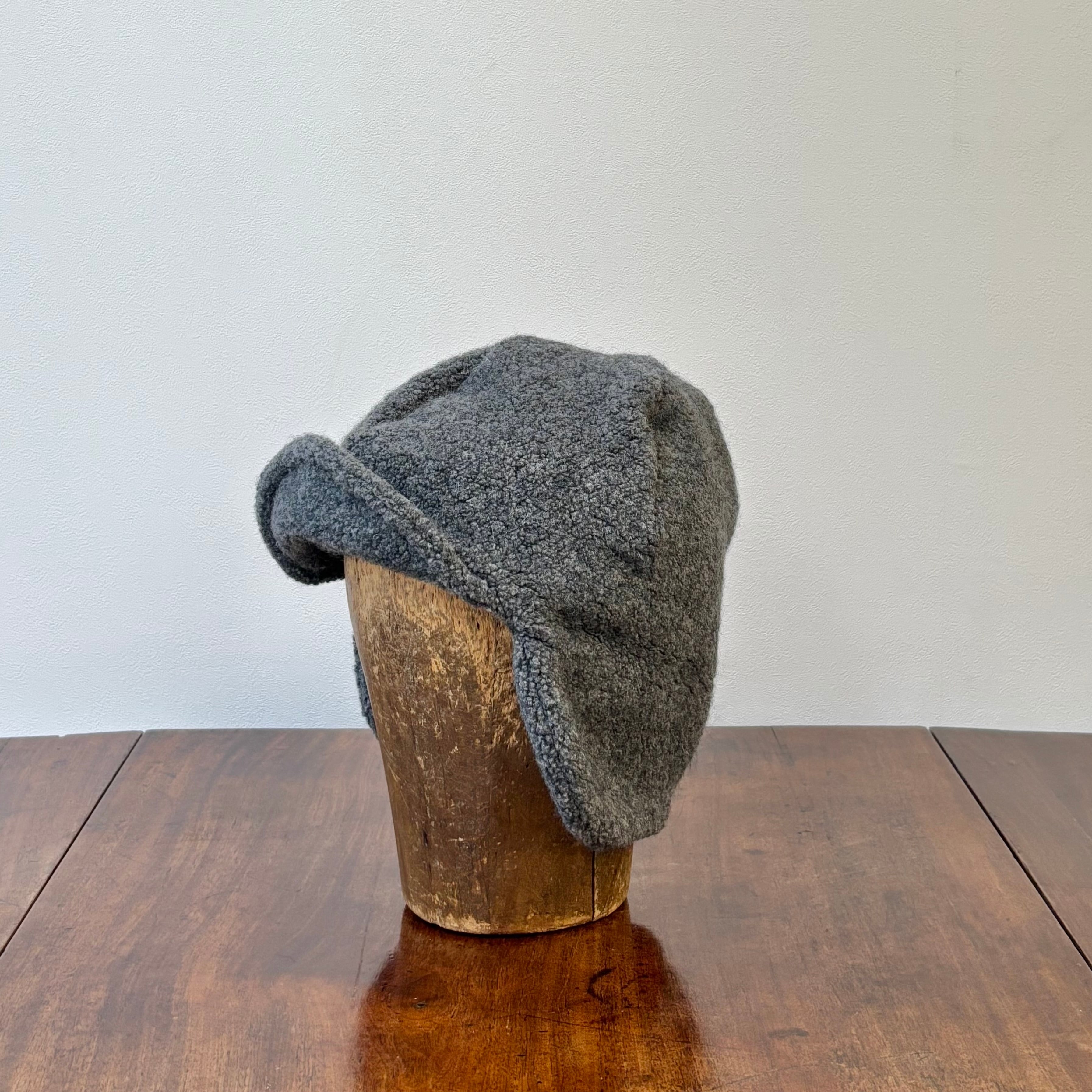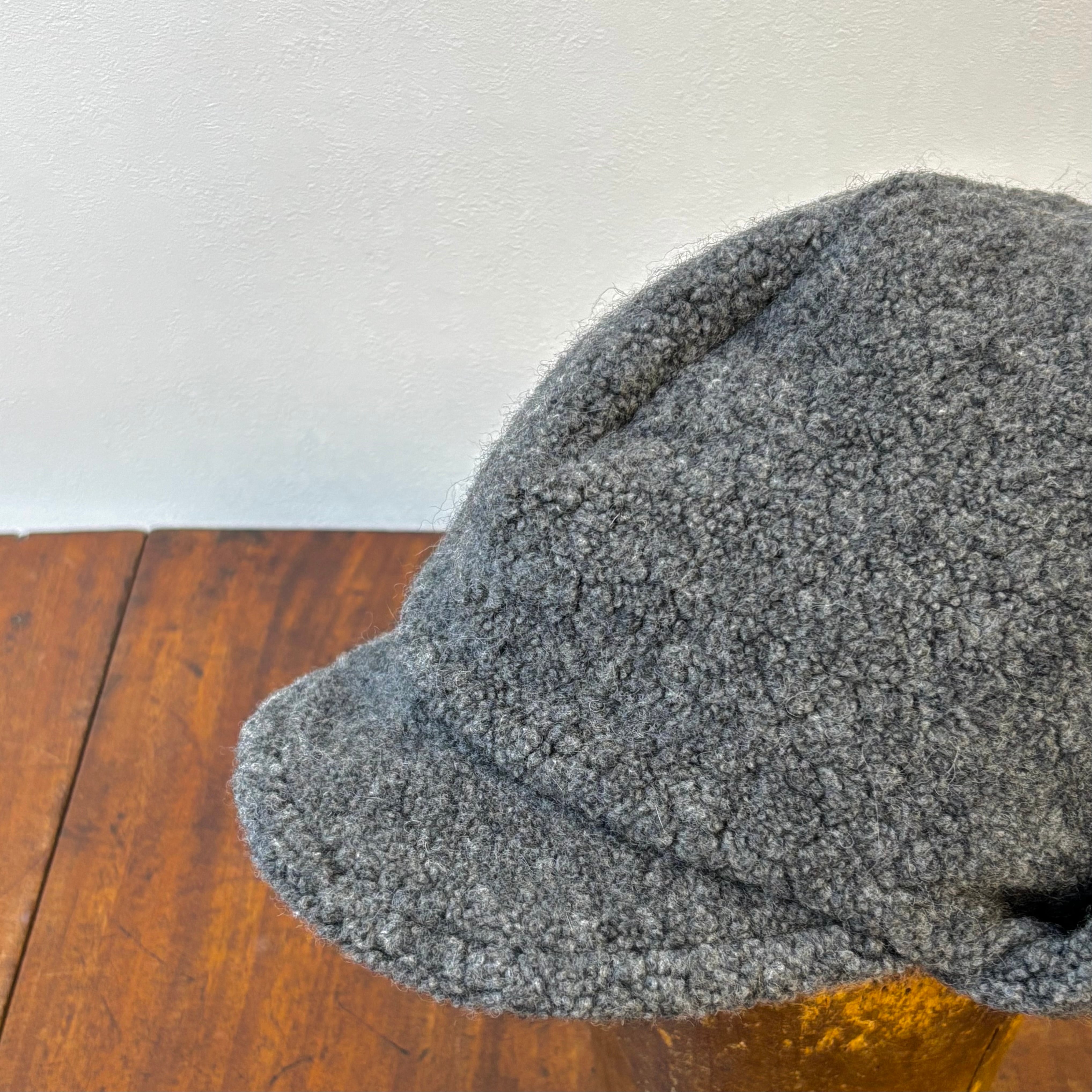 リサイクルウールを使用したパイル生地で、ソフトで軽く伸縮性も併せもっています。つばの先にはプラスチックワイヤーがはいっています。