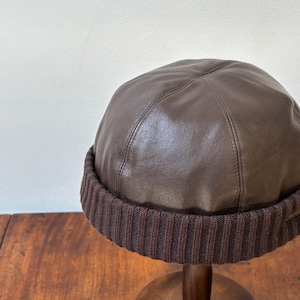 上品な光沢感のあるクラウンと、リブ編み仕立ての折り返し部分のコンビネーションが絶妙です。