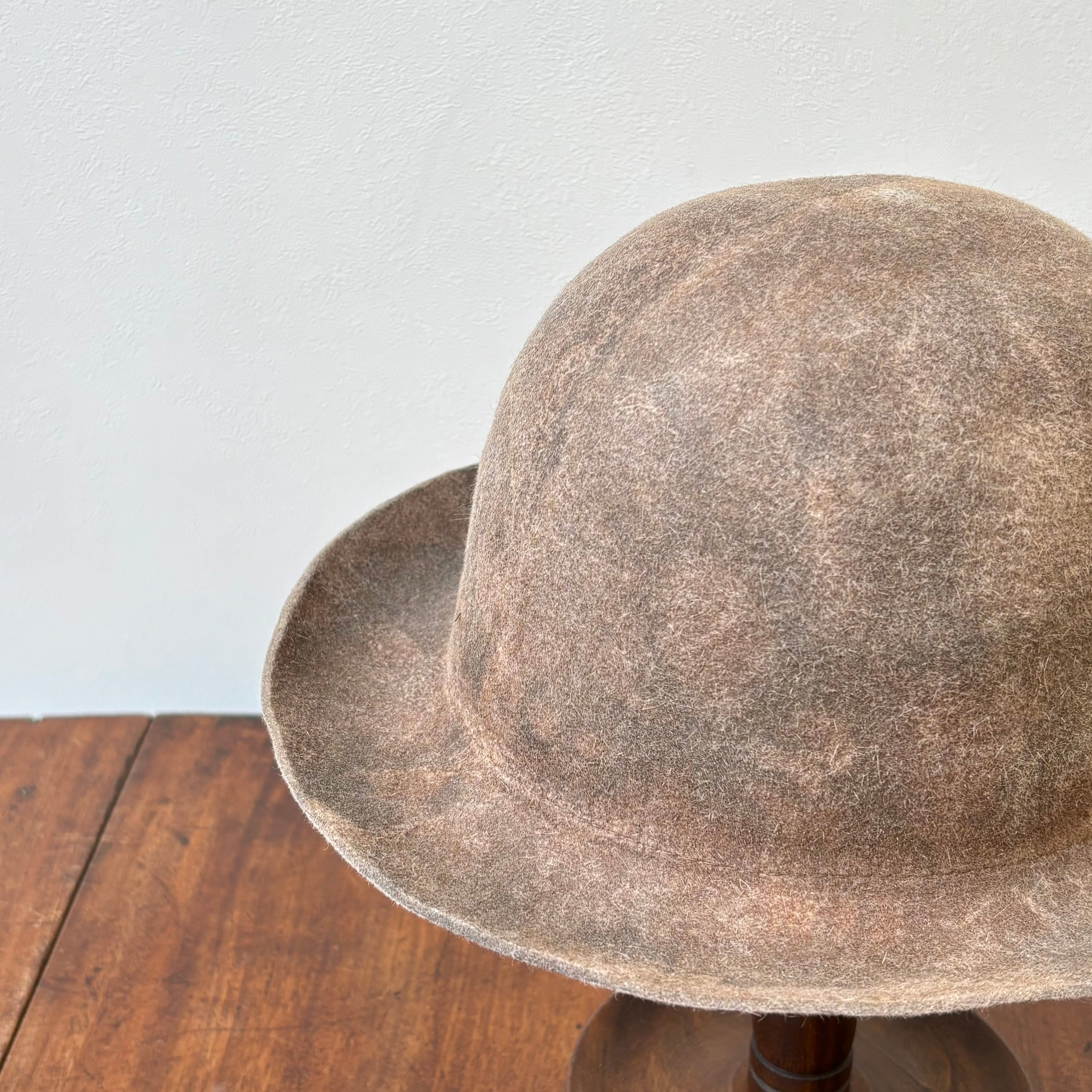 上質なラビットファー100%のハットに柿渋染め(後染め)を施した一点ものです。