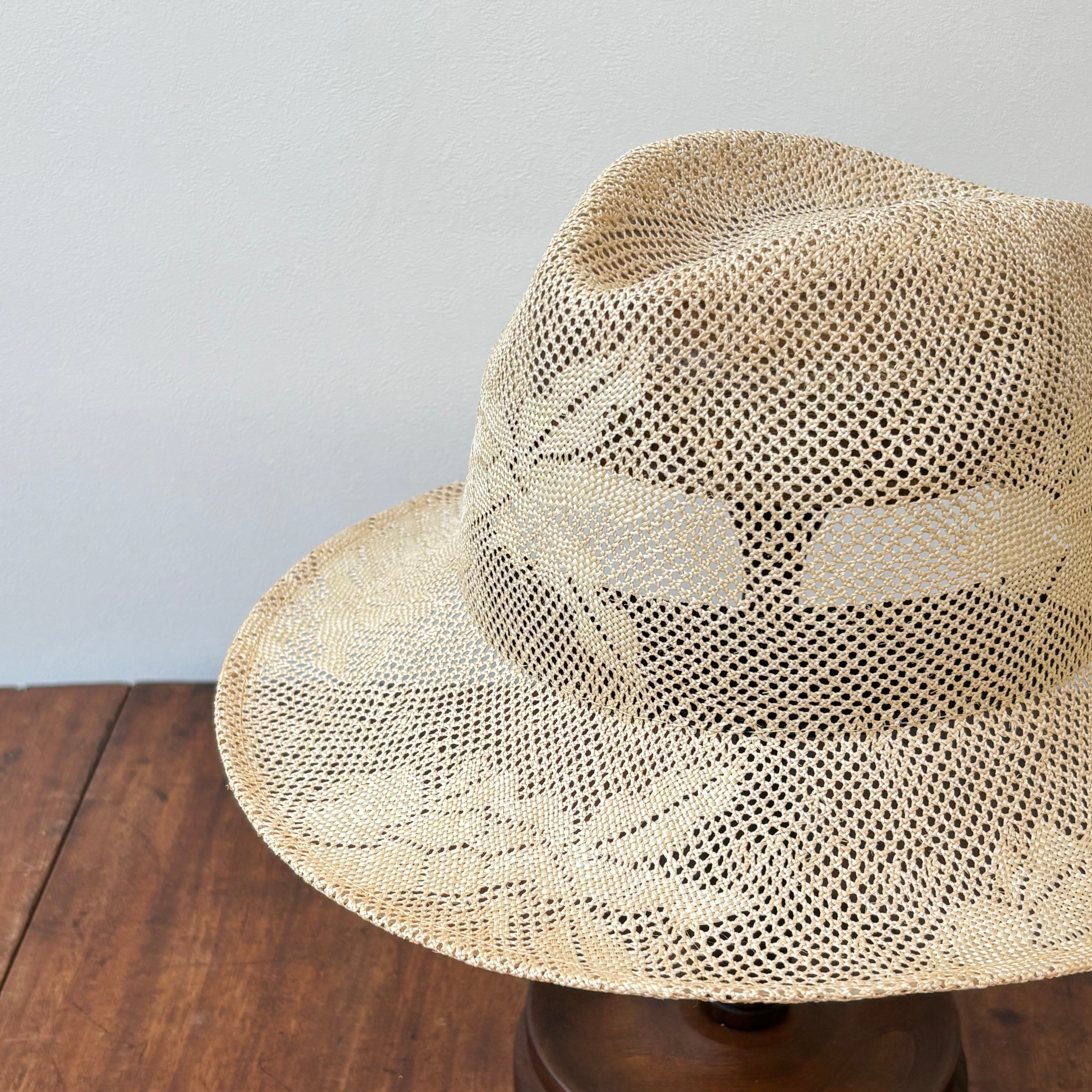 透け感のあるシゾール素材に金魚模様がきれいな中折れハットです。 とても軽いかぶり心地と上品な光沢感が特徴です。 サイズ:M(56〜58cm) ツバの長さ: 約8cm 素材:シゾール100% サイズ調整:可能 製造国:日本 ※金魚柄は商品により模様の出方が異なるため、画像と異なる場合がございます。 ※商品サイズは実寸です。採寸方法によっては、若干の誤差が生じる場合がございます。 ※天然素材を使用しております。製品によっては染色のムラや変色が見られる場合がございますので、ご理解の上ご購入ください。